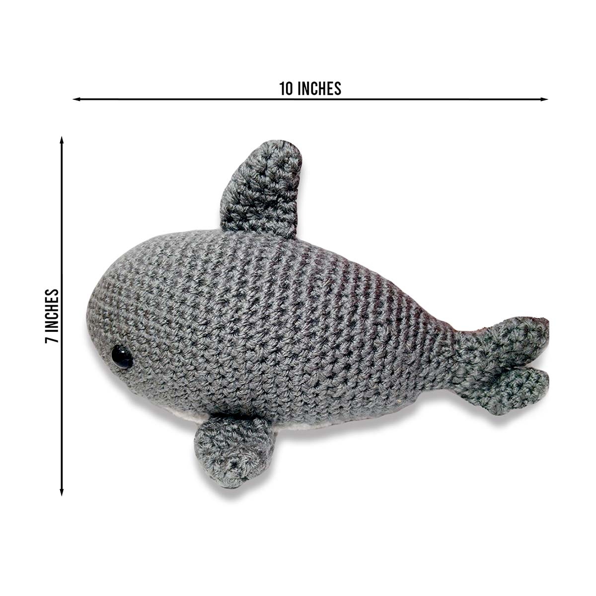 Handmade crochet shark plush Soft, durable yarn Lightweight and huggable Best suited for ages 3+ or as a decorative piece Cute, cozy, and crafted with care—this shark brings ocean magic without the bite.